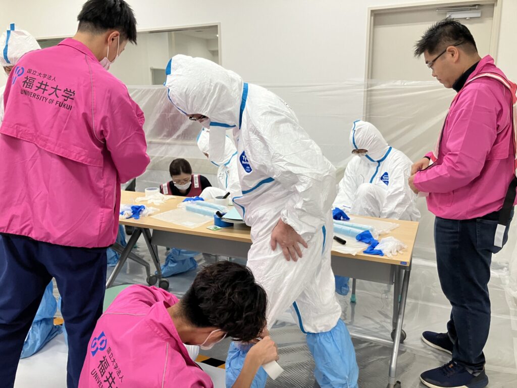 放射線による被ばくや放射性物質による汚染を含む傷病者の受入れ対応などについて高度・専門的な知識と技能を維持するため及び受講生の負担を軽減する目的でR6年度に中核人材技能維持研修が新設され、8名が受講しました