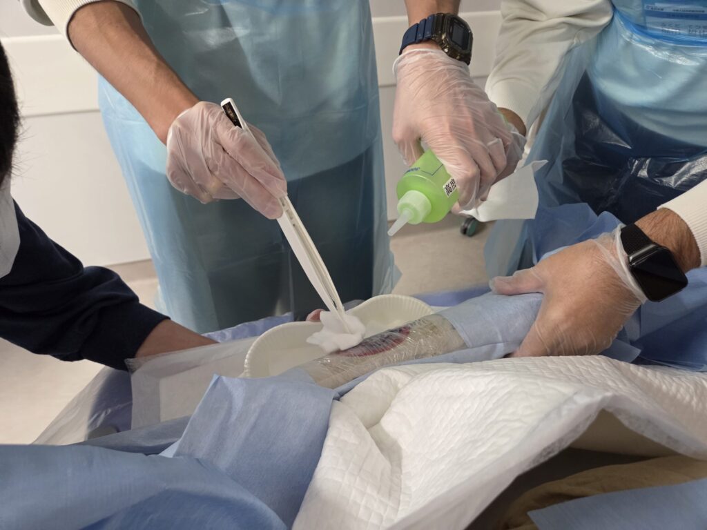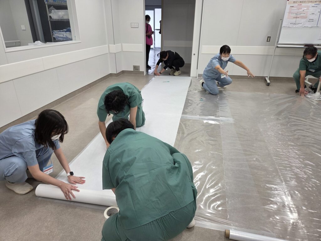 放射線による被ばくや放射性物質による汚染を含む傷病者の受入れ対応などについて高度・専門的な知識と技能を維持するため中核人材技能維持研修が開催され、12名が受講しました